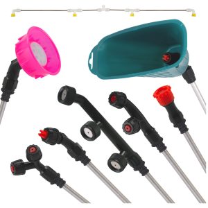 - 2 подвійні насадки різних форм: для ефективного покриття більших площ, ідеально підходить для обприскування широких грядок, забезпечуючи два рівномірні потоки.