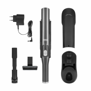 У комплекті: зарядна база, щілинна насадка 2 в 1, насадка для підлоги, підставка