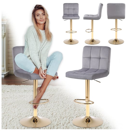 Барний стілець RAFA, сірий оксамит, золота основа