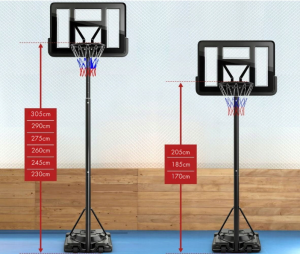 Регулювання висоти: це баскетбольне кільце має кілька рівнів регулювання, пропонуючи широкий діапазон висоти від підлоги до обода, щоб забезпечити розвагу гравцям різного віку та рівня кваліфікації. Нижню трубу рами можна зняти, щоб досягти найнижчої висоти для дітей молодшого віку.