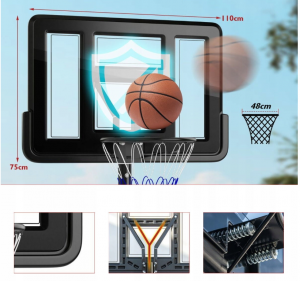 Високоякісний щит: це баскетбольне кільце з трикутною опорою та міцним ПЕТ-щитом із захистом країв забезпечує виняткову міцність. Амортизуюча конструкція обода та зносостійка нейлонова сітка можуть витримувати інтенсивні матчі без пошкоджень.