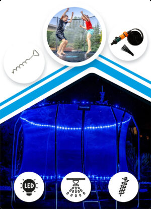 Стійкість до погодних умов – завдяки міцним матеріалам, пінопластовим покриттям стійок та захисному килимку, батут стійкий до погодних умов та ультрафіолетового випромінювання. Захисний килимок повністю покриває пружини та раму, тому ваша дитина може стрибати безпечно та вільно.