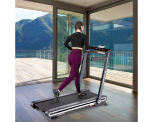 Якщо ви хочете відстежувати свій пульс під час тренувань, ви можете зробити це, оскільки бігова доріжка оснащена нагрудним ремінцем і має ручки із вбудованими датчиками серцевого ритму. Якщо ручки заважають вам під час тренування, ви можете скласти їх, щоб отримати додатковий простір. Ще однією унікальною особливістю цієї бігової доріжки є барвиста панель управління з підсвічуванням, яка змінює кольори залежно від того, наскільки швидко ви рухаєтесь зоною бігу.
