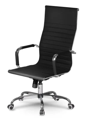 - Високе крісло з профільованою спинкою та хромованими елементами.