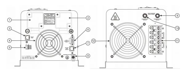 - Вхідні штекери змінного струму та штекери для підключення навантаження