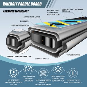 - Дошка виготовлена за технологією Drop Stitch , що гарантує довговічність, стійкість і легкість.