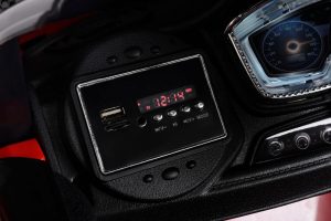 відкриття дверей ремені безпеки Можливість підключення MP3 плеєра або телефону будований плеєр вбудовані мелодії амортизація заднього колеса можливість підключення micro SD карти звук двигуна при запуску вбудований динамік з регулюванням гучності трьохспицеве кермо з клаксоном індикатор заряду акумулятора фіктивні годинники з підсвічуванням |
