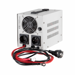 з функцією заряджання перетворює напругу 12 В постійного струму, що подається від зовнішньої батареї, на напругу 230 В змінного струму та заряджає зовнішню батарею.