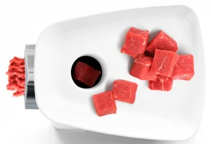 Великий вихідний отвір (≈ 5 см) спрощує подачу м’яса/частин.