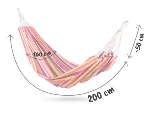 - Розміри гамака 200 x 160 см дозволяють насолоджуватися відпочинком у літні післяобідні години,