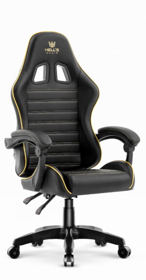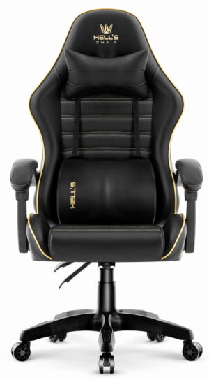 Геймерське крісло екошкіра Hell’s Chair HC-1003 2.0 чорне золото