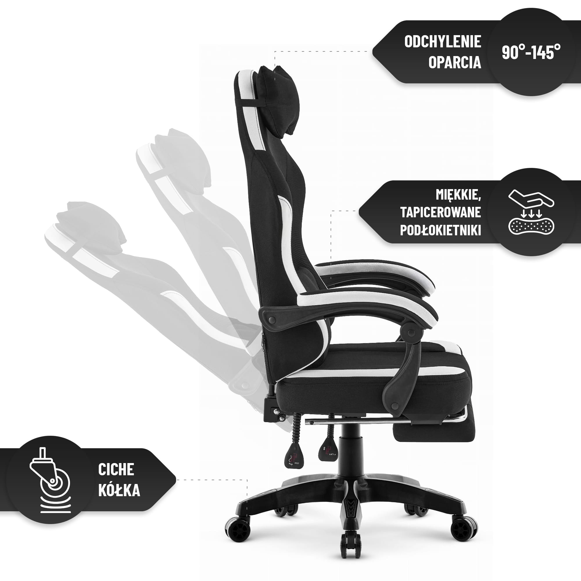 ▶️ Розсувна підставка для ніг – Ця модель має практичну висувну підставку для ніг, яку можна розсунути в будь-який час, щоб зручно витягнути ноги. Ви особливо оціните цю функцію під час тривалих ігрових сесій, перегляду фільмів або роботи за ноутбуком – крісло тоді перетворюється на комфортне місце для відпочинку.