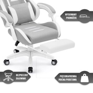 Крісло HC-1039 біло-сіре – ідеальний вибір для тих, хто цінує унікальний дизайн та максимальний комфорт. Воно забезпечує комфорт як під час захопливих ігрових сесій, так і під час тривалої роботи за комп’ютером, поєднуючи ергономіку із сучасним стилем. Воно поєднує перевірені рішення, такі як механізм плавного регулювання кута спинки, з унікальним та елегантним дизайном, який відповідає смакам навіть найвибагливіших клієнтів.