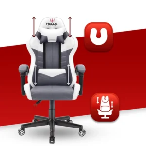 Ігрове крісло HELL’S CHAIR HC-1004, біле-сіре, тканинне