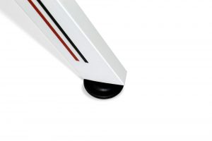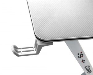 Завдяки двом отворам для кабелів ви забудете про непотрібну плутанину. Але це ще не все! Наш стіл виготовлений з легкого, але надзвичайно міцного карбону, що гарантує не тільки стильний зовнішній вигляд, але й тривалу експлуатацію. Під рамою ви знайдете маленькі гумові ніжки, які захищають підлогу від подряпин.