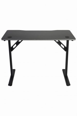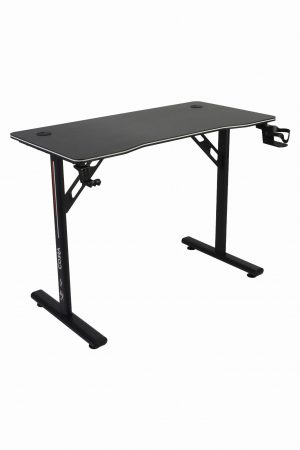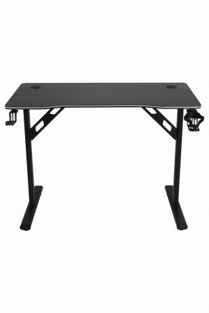 Стільниця оснащена двома практичними отворами для кабелів, які дозволяють упорядкувати кабелі та підтримувати поверхню в порядку. Додаткові тримачі для навушників і пляшок з водою підвищують привабливість столу, забезпечуючи легкий доступ до необхідних аксесуарів під час гри чи роботи.