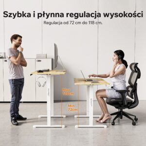Висота регулюється від 72 до 118 см . За допомогою кнопок «вгору» та «вниз» ви можете легко відрегулювати стільницю. Точне налаштування здійснюється легко завдяки світлодіодному дисплею, який відображає поточну висоту в сантиметрах. Система також має можливість зберігати три налаштування – одного клацання достатньо, щоб повернутися до улюбленого положення.