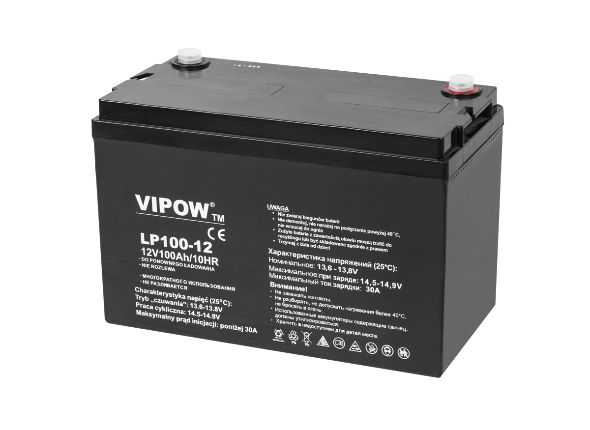 Гелевий акумулятор Vipow 12 В / 100 Ah BAT0225 Він широко використовується для джерел безперебійного живлення, систем сигналізації, мототехніки, газонокосарок чи кемперів, де важлива тривала робота без мережевого живлення.