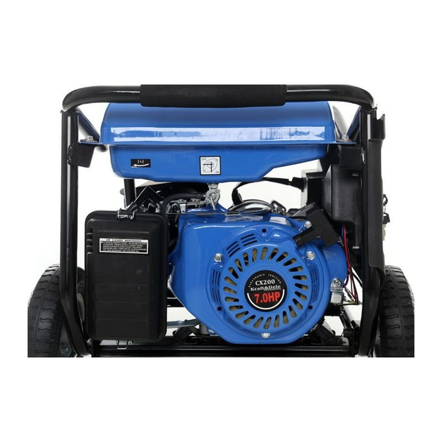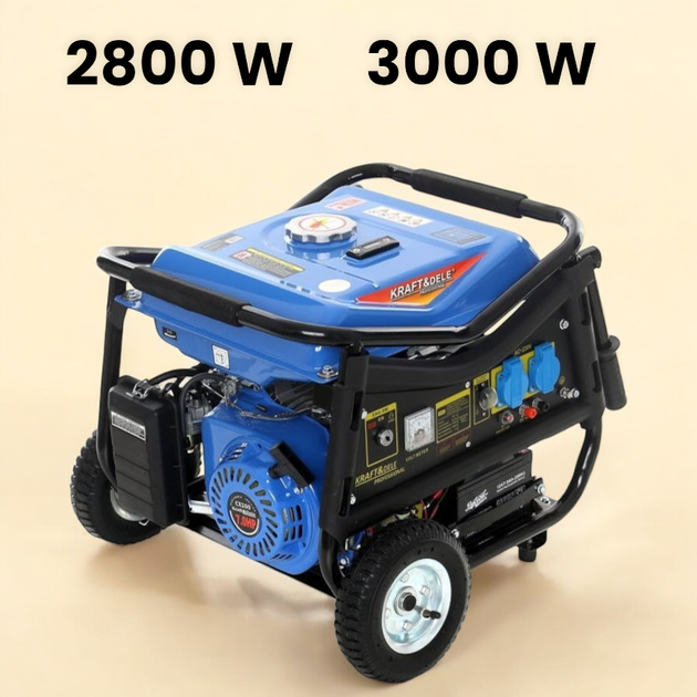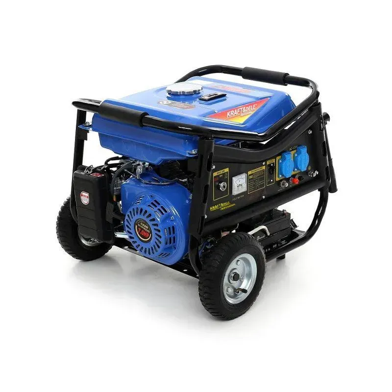 Портативний однофазний генератор KD144 від Kraft&Dele призначений для генерації змінного струму 220-230 В з використанням чотиритактного двигуна внутрішнього згоряння японської конструкції OHV потужністю 7 к.с. та максимальною потужністю генератора 3000 Вт.