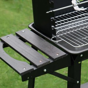 Гриль пофарбований в чорний колір, що надає йому привабливого зовнішнього вигляду. Чаша для вугілля оцинкована, що означає, що вона стійка до корозії та довго зберігає свій первинний вигляд. Розмір варильної решітки 40х42 см – хромована. Мангал має зручну нижню полицю для приладдя для грилю.