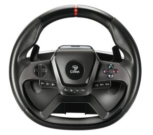 GT987 розроблено для тривалих перегонів. Ергономічний обід керма, покритий м’яким зручним матеріалом, забезпечує зручність використання, а 12 програмованих кнопок дій дозволяють повністю контролювати гру. Додаткові перемикачі під кермом забезпечують швидке перемикання передач, що ідеально підходить для динамічного водіння.