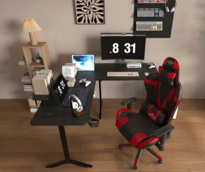 Ми представляємо міцний, зручний стіл для геймерів з ергономічним дизайном, який дозволяє підлаштувати його під будь-який тип фігури.