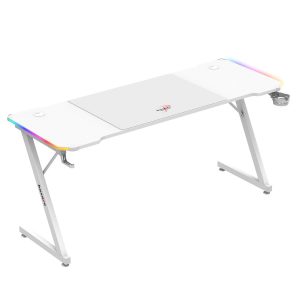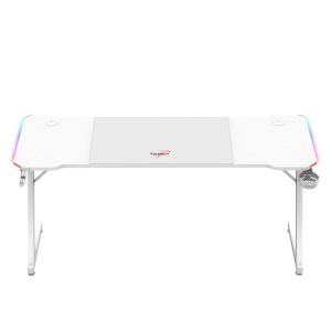 Нехай ваш стіл не буде просто нудним предметом меблів. Світлодіодне освітлення RGB перетворить ваш робочий і розважальний простір на надихаючий оазис творчості. Завдяки багатьом колірним режимам ви створите атмосферу, яка відповідає вашому настрою, а стільниця довжиною 160 см задовольнить усі ваші потреби. Комфорт користування столом підвищать килимок XXL, решітка і отвори для кабелів, а також тримачі для навушників і чашки.