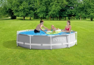 Каркасний басейн Intex 26700 Premium – це чудовий варіант для відпочинку та розваг усієї родини або невеликої компанії друзів. Класична кругла форма, елегантний темно-сірий лайнер із дном у вигляді блакитної мозаїки прикрасять будь-яке подвір’я!