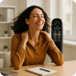 Колонний вентилятор підлоговий U-SMILER KMDW100 Він має стильну, компактну колонну конструкцію і забезпечує комфортну циркуляцію повітря, що робить перебування в приміщенні приємнішим у спекотні дні.