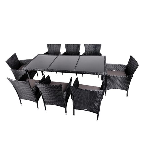 Комплект садових меблів SANTOS на 8 місць з ротанга, чорний, скло, чорний