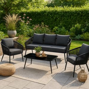 Комплект садових меблів SIERRA BLACK, 5 місць, стіл, крісла, диван