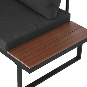 Стіл та бічні полиці з оздобленням кольору дерева – Практичний журнальний столик та бічні панелі біля сидінь виготовлені з міцного пластику кольору натурального дерева. Ці елементи не лише служать утилітарній меті – як місце для напоїв, книг чи декору – але й візуально зігрівають індустріальну форму гарнітуру, впроваджуючи баланс між сирістю металу та естетикою дерева.