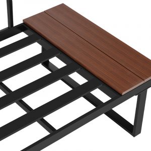 Стабільна сталева рама – Конструкція комплекту виготовлена з міцної сталі з порошковим покриттям , що забезпечує стійкість до корозії, подряпин та зміни погодних умов. Матове чорне покриття надає елегантного вигляду та відповідає сучасним садовим тенденціям.