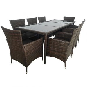 Комплект садових меблів SANTOS на 8 місць з ротанга, коричневий, чорний, скло