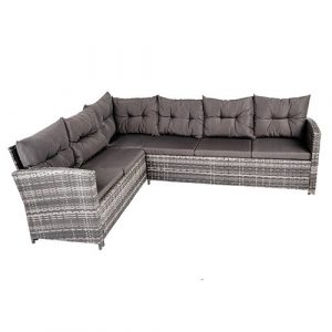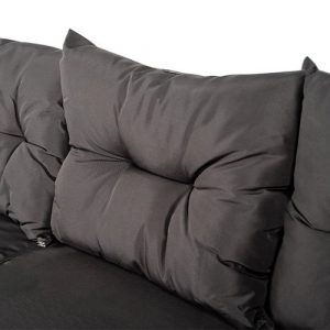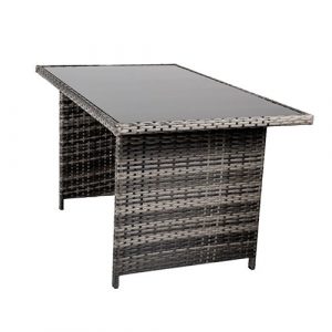 - Матеріал: Стабільна сталева конструкція, покрита змішаним сірим техноратангом , темним склом, подушками з темно-сірої тканини
