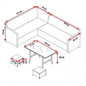 Розміри кутового дивана: [довжина х ширина х висота]: 175 х 66 х 76 см