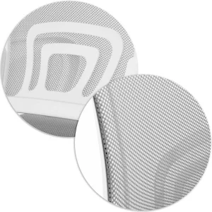 Унікальність крісла Latok підкреслюється використаннямм’якоїідихаючоїмікросітки. Цей матеріал є частиною конструкції спинки, створюючи ідеальну противагу для стабільного сидіння та основи.
