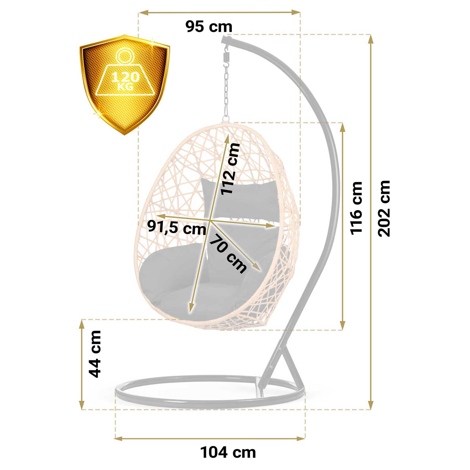 - укріплені кріплення фотеля, міцний ланцюг та гак з пружиною!