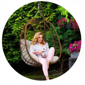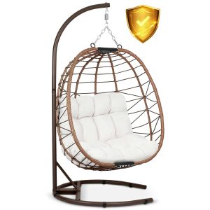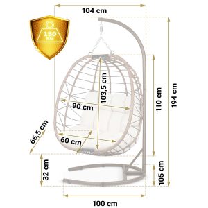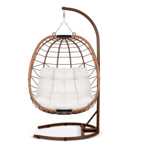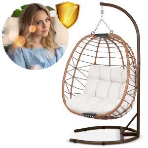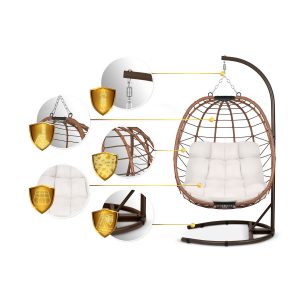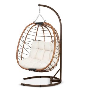 Комфортне Підвісне Крісло Tihuana Sofotel Коричневе зі Світло-Бежевими Подушками для Саду