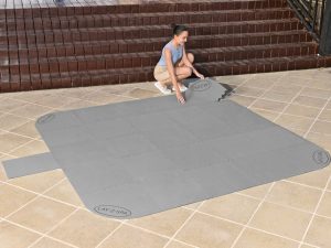 Килимок виготовлений з міцного матеріалу, який забезпечує додатковий захист SPA і поверхні, на яку він розміщений.