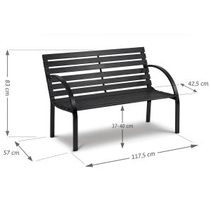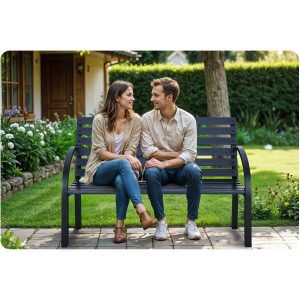 Комфортна сучасна лавочка, яка чудово підійде для вашого саду, тераси або патіо. Мінімалістичний дизайн дозволяє легко інтегрувати меблі в навколишню обстановку. Зручне сидіння забезпечує комфорт під час відпочинку на свіжому повітрі.