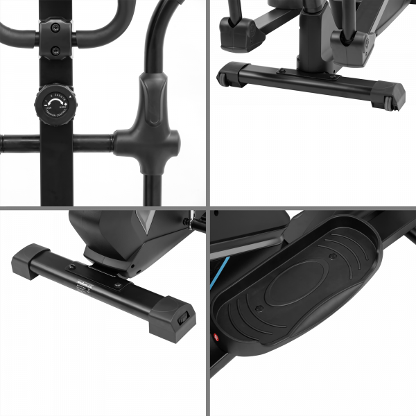 Регулярні заняття на еліптичному тренажері Rebel Active допоможуть вам спалити калорії та покращити зовнішній вигляд фігури. Завдяки ручному регулюванню опору на 8 рівнях домашній еліптичний тренажер RBA-1012 дозволяє м’яко розпочати тренування, що робить його ідеальним для людей, які тільки починають свою пригоду з активності. Ефективність вправ підвищує також використання маховика вагою 6 кг.