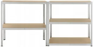 Стелаж складається з 5 полиць, на яких можна розмістити продукти, коробки або прилади, з максимальним навантаженням до 200 кг на кожну полицю.