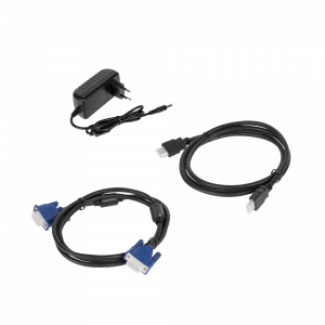 Блок живлення (145 см), посібник користувача, кабель HDMI (150 см), кабель VGA (150 см)