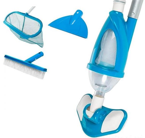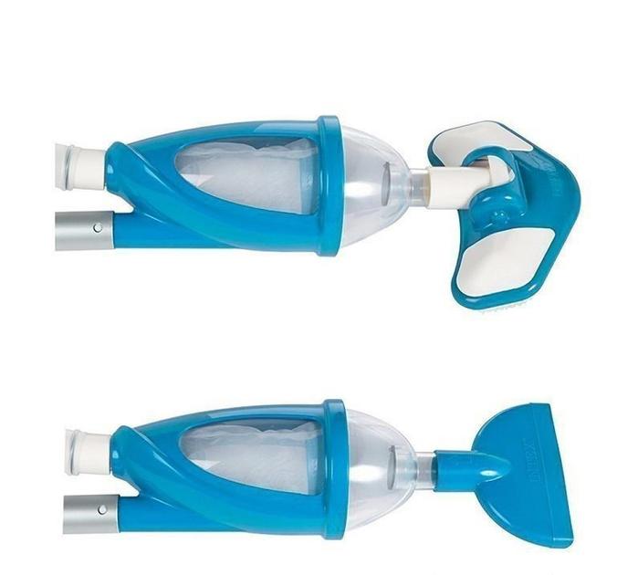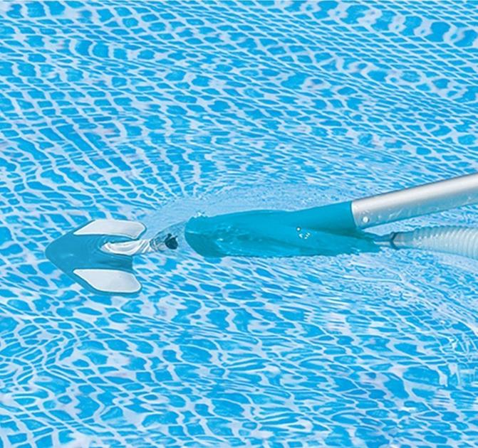 Intex 28003 це універсальний комплект для чищення каркасного, надувного і навіть стаціонарного басейну. Всі складові набору виготовлені з високоякісних і міцних матеріалів. В комплект поставки входить дрібно пористий сачок, для збору різного сміття з поверхні води, а також жорстко-ворсиста щітка для чищення дна та стінок басейну, різні насадки для пилососа. Величезним плюсом даного комплекту для чищення басейнів є те, що він працює за принципом пилососа, тобто підключається безпосередньо до насоса-фільтра для очищення та рециркуляції води в басейні, таким чином можна починати процес збирання. Для повністю ефективної роботи пилососа компанія Інтекс радить використовувати насос-фільтр, продуктивністю від 3028 літрів на годину. До ручки, довжиною 279 сантиметрів, прикріплюється гофрований шланг, який забезпечить доступ до будь-якої точки басейну діаметром не більше 549 сантиметрів.Для роботи вакуумної насадки і пристрої для очищення поверхні потрібно фільтруючий насос з продуктивністю від 5678 л/ч.