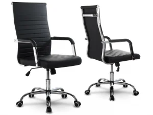 - Мінімалістичний дизайн, який поєднує класичний чорний колір із сучасними сталевими елементами, робить крісло Boston гармонійним вписуванням у будь-яку кімнату, становлячи її практичну прикрасу.
