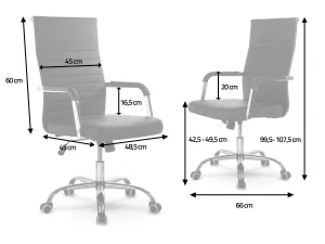 Крісло оснащене хромованими підлокітниками та м’яким сидінням, обтягнутим приємною на дотик екошкірою.