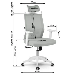 Завдяки винятковій увазі до деталей це крісло стане прикрасою будь-якого інтер’єру. Спинка з міцної мікросітки поєднує в собі візуальну легкість і гарантію довговічності в одному предметі меблів, а регульований підголівник дозволяє регулювати крісло під зріст користувача.