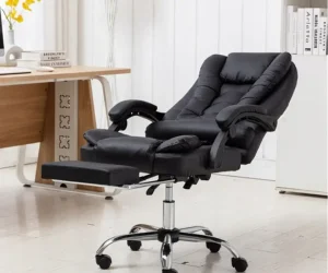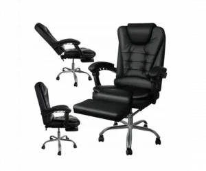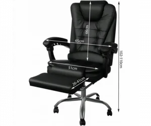 Офісне крісло з підставкою для ніг, що ідеально адаптується до силуету сидячої людини, оббито м’якою екошкірою. Контур забезпечує максимальний комфорт навіть під час сидіння протягом багатьох годин. Додатково крісло має подвійний шар губки, що значно підвищує комфорт використання. Високий вбудований підголівник і відповідний профіль гарантують функціональність і підтримку голови, а широке сидіння дозволить працювати багато годин. Підлокітники м’які та зручні, що зменшує біль у ліктях та навантаження на хребет.