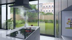 Представлена острівна витяжка є ідеальним рішенням для людей, які шукають ефективний пристрій, який додасть стилю та елегантності кухні.